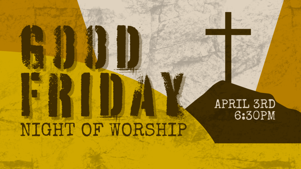 Good Friday is the day we recognize Jesus dying on the cross and proclaiming, “It is finished!” Join us on April 3rd at 6:30pm for a night of worship, prayer, and communion.